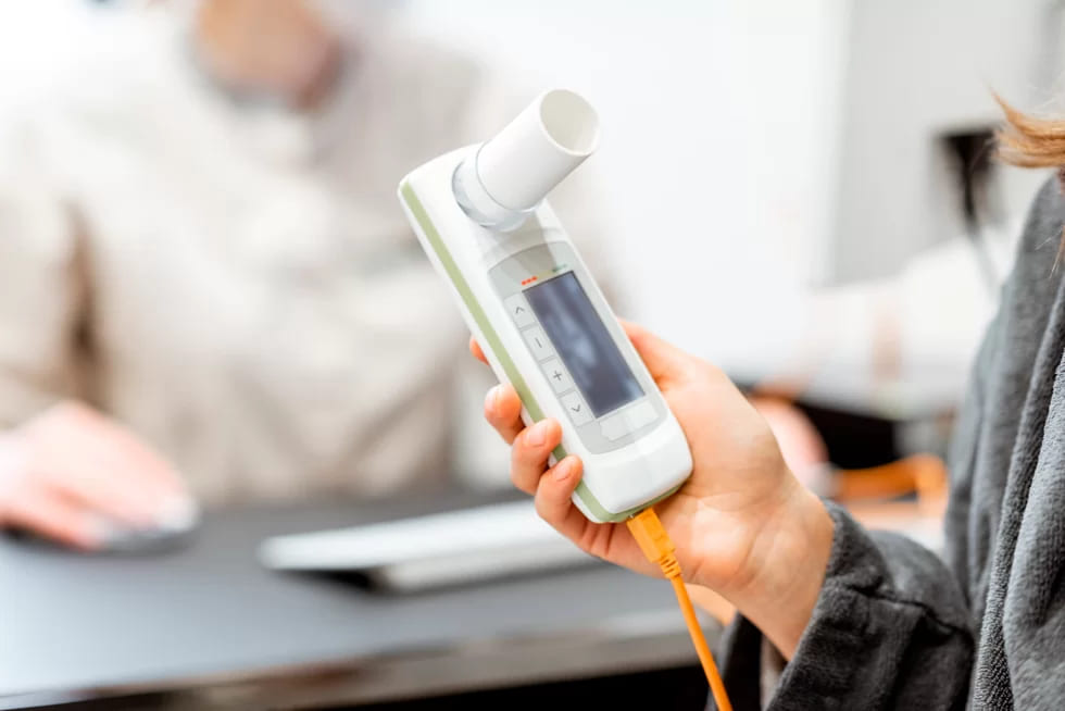 El equipo registra parámetros como la capacidad pulmonar y el flujo de aire.