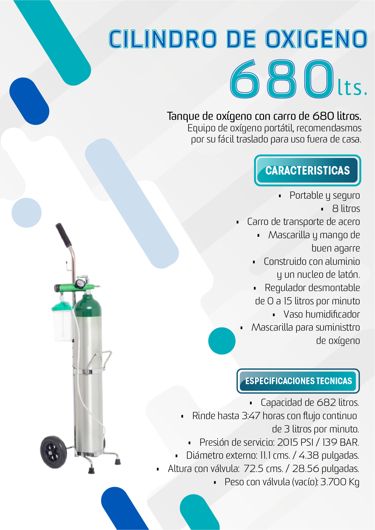 Existen diferentes tipos de dispositivos que pueden proporcionarle oxígeno. Algunos usan tanques de oxígeno líquido o gaseoso. Otros usan un concentrador de oxígeno, el que extrae oxígeno del aire. Lo puede obtener a través de un tubo nasal (cánula), una máscara o una cámara de oxígeno. El oxígeno adicional es inspirado junto al aire normal.